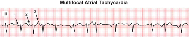 Multifocal Atrial Tachycardia (MAT)— > 100 bpm