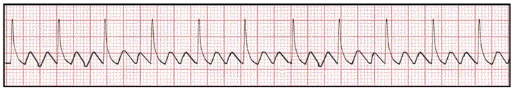 Atrial Flutter—300 bpm (atrial); variable bpm (ventricular)