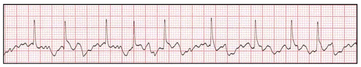 Atrial Fibrillation— 350 bpm (atrial); variable (ventricular)