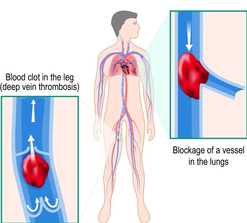 A pulmonary embolism is a blockage of the main artery of the lung or one of its branches by a substance that has traveled from elsewhere in the body through the bloodstream. A PE most commonly results from deep vein thrombosis (a blood clot in the deep veins of the legs or pelvis) that breaks off and migrates to the lung, a process termed venous thrombosis. A small proportion of cases are caused by the embolization of air, fat or talc in drugs of intravenous drug abusers. The obstruction of the blood flow through the lungs and the resultant pressure on the right ventricle of the heart lead to the symptoms and signs of PE. The risk of PE is increased in various situations, such as prolonged bed rest.