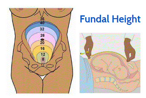 FUNDAL HEIGHT: The size of the fetus (age of gestation in weeks) is important during the assessment of the pregnant patient involved in trauma, but it is difficult to assess the fetus. The following tips are useful, but few: